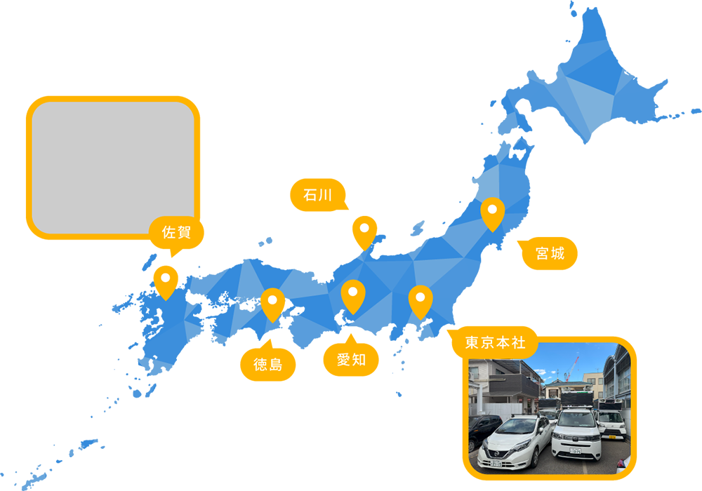 全国6ヶ所に選挙プランナー事務所を設置しており、選挙レンタカーの配車を日本各地へおこなっております。