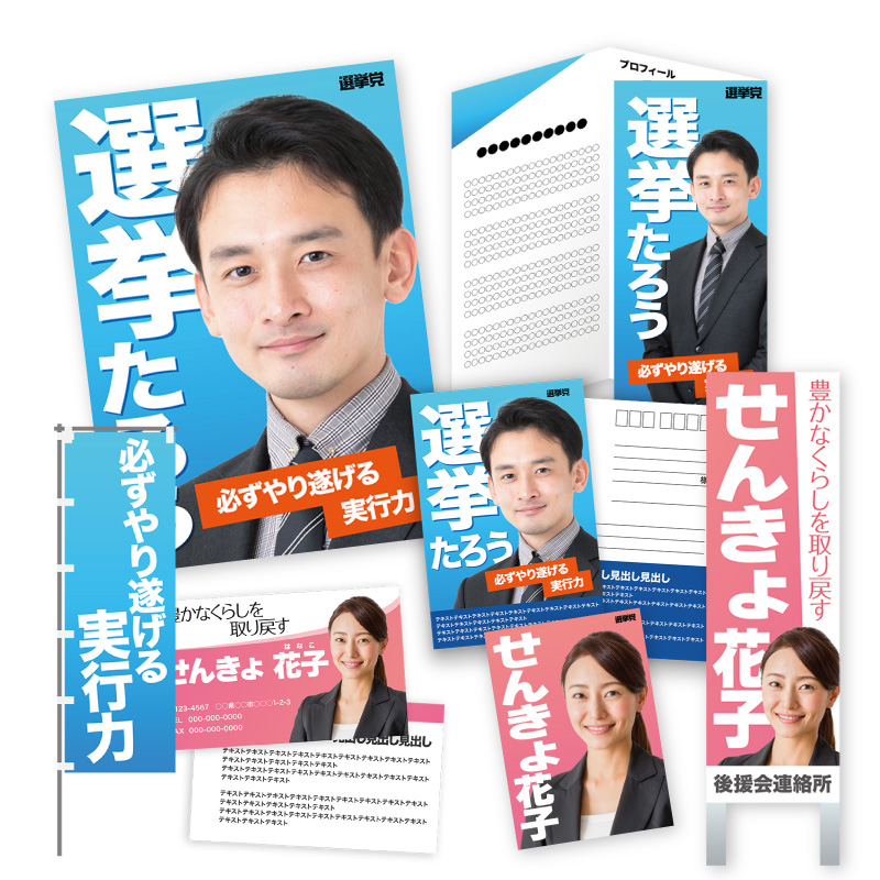 選挙前の準備期間から当選後の活動報告まで、選挙の全ステージに必要な選挙用品を幅広く提供しています。